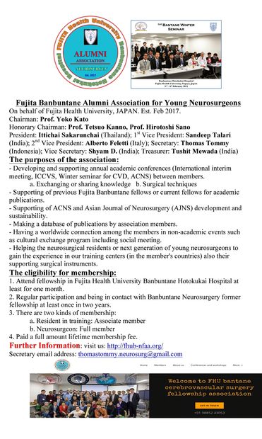 We are a group of neurosurgeons from all over the world who have done a vascular neurosurgery fellowship program in Fujita health university-Banbuntane Hotokukai hospital under Prof Yoko Kato and Prof Hirotoshi Sano
